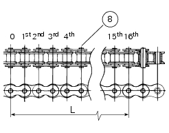 If the length (l) is greater than 256.5 Mm, the chain should be replaced.