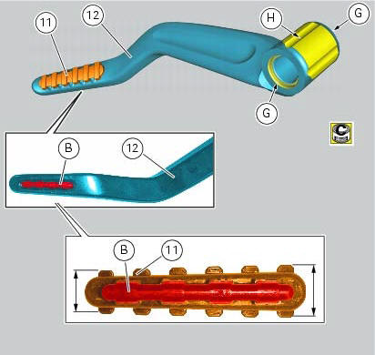 If previously removed, apply recommended grease into the holes (l) and insert balls (14) and springs (15) into the relevant holes of the rear subframe rh bracket.