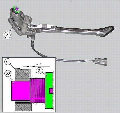 Start the adjuster (36) and tighten it manually (y is equal to about 2 threads) on the external side of the plate of the side stand assembly (g).
