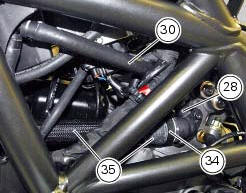 Refitting the cooling system hoses and unionsRemoving of the rear brake control