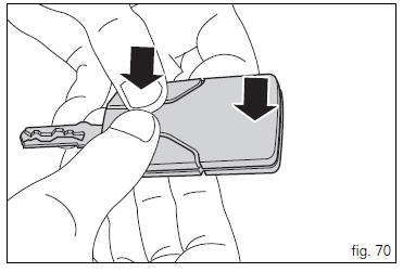Align the two shells of the grip and press on the area indicated by the arrows (fig. 70) To reclose them.